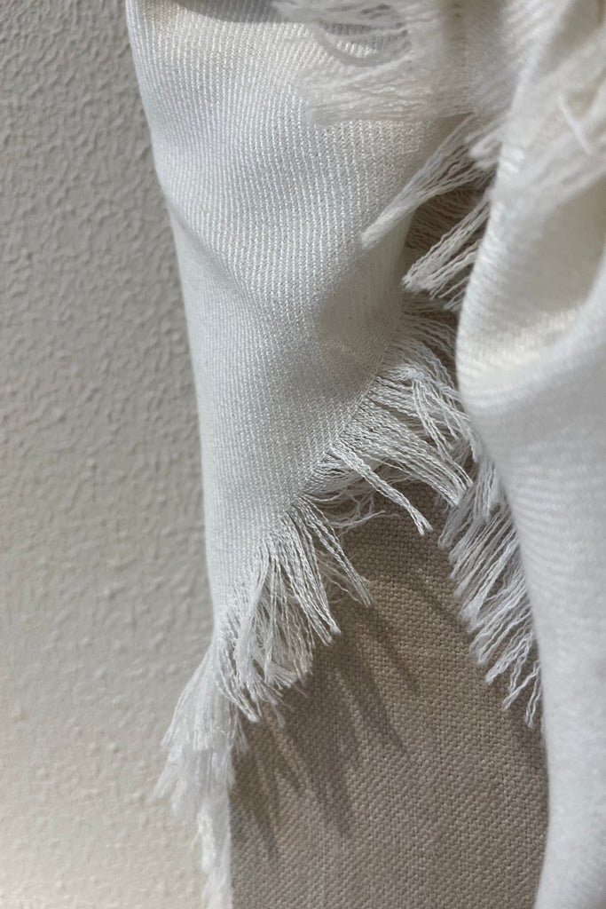 Foulard carré en étamine de cachemire, finitions frangées 3 cm.
