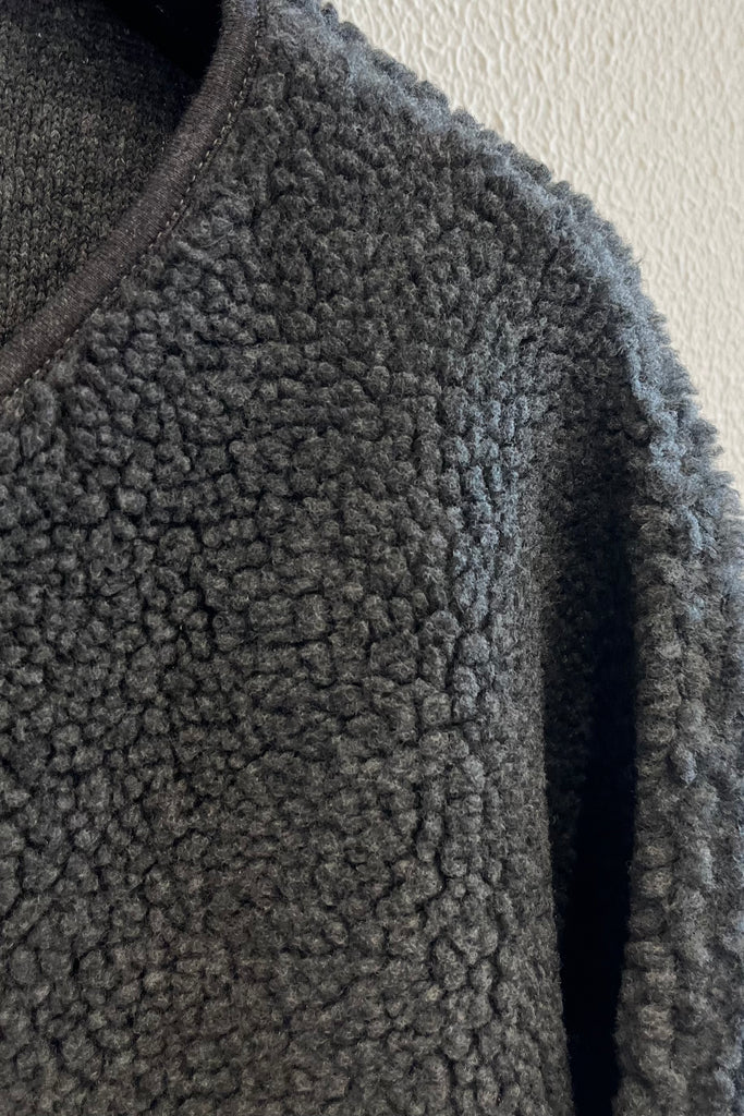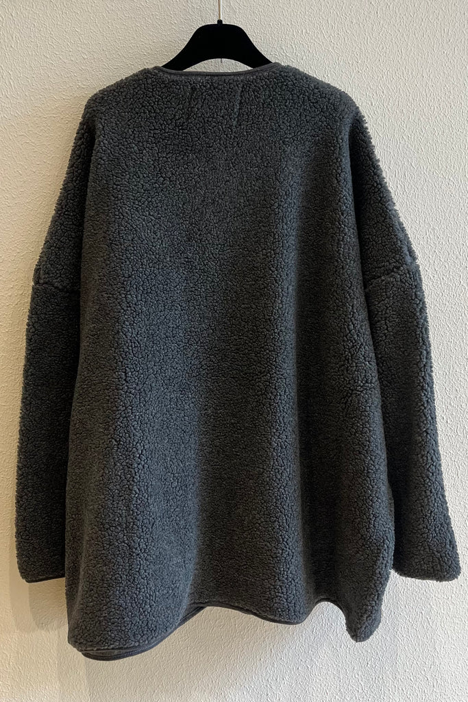Veste oversize en bouclette souple et légère, poches plaquées et fermetures boutonnées. Taille unique.
