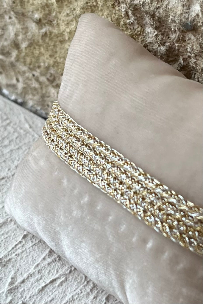 Bracelet artisanal tressé en fil d'or, cette passementerie est traditionnellement utilisée pour broder les caftans marocains.