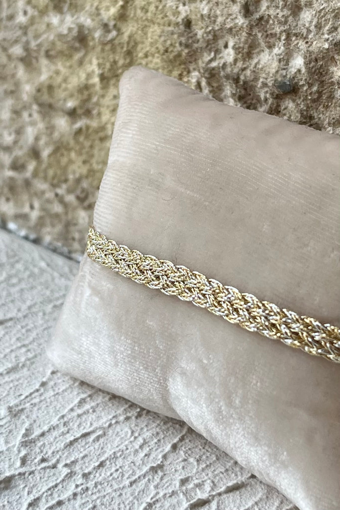 Bracelet artisanal tressé en fil d'or, cette passementerie est traditionnellement utilisée pour broder les caftans marocains.