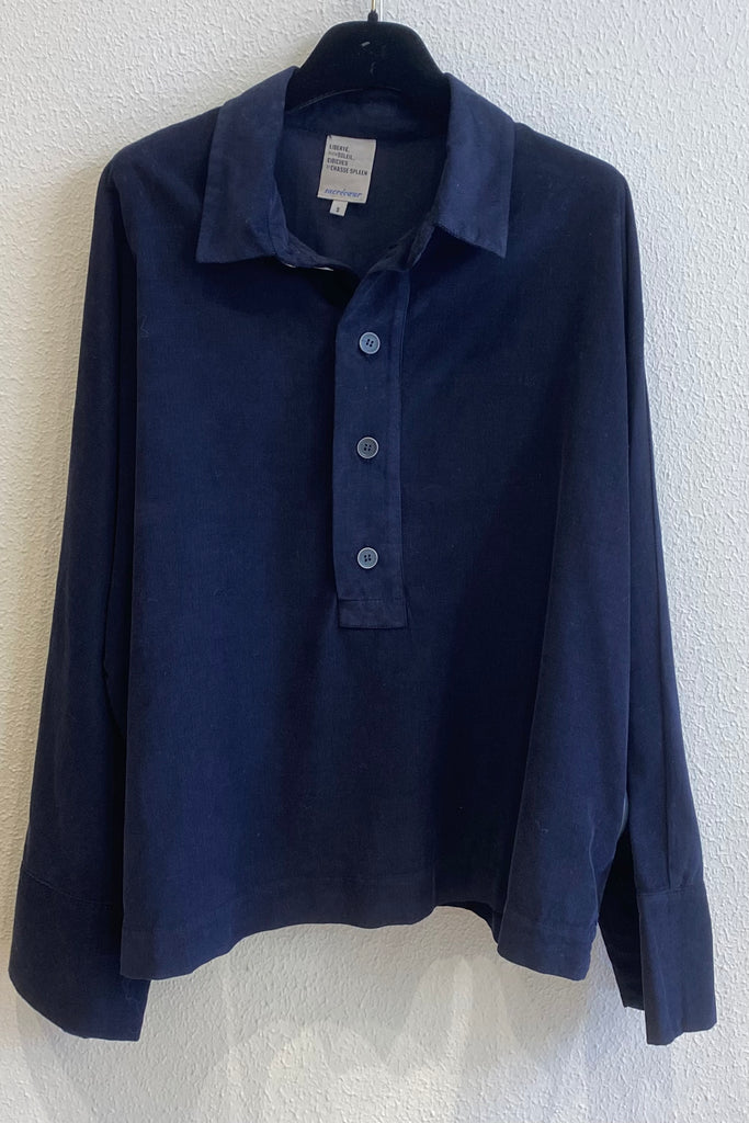 Vareuse en velours fin et souple, boutonnée à l'avant et manches longues et amples.