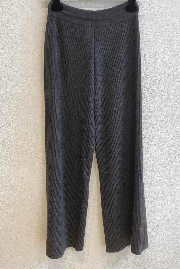Pantalon en maille côtelée en cachemire, taille élastiquée avec cordons de resserrage.