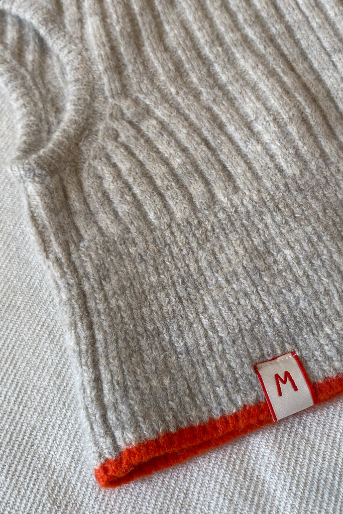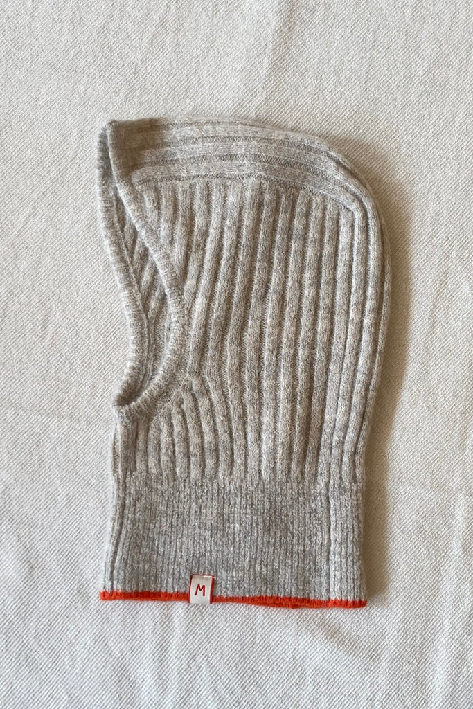 Cagoule en maille côtelé, finition orange et brodée "M "comme Moismont . Taille unique.