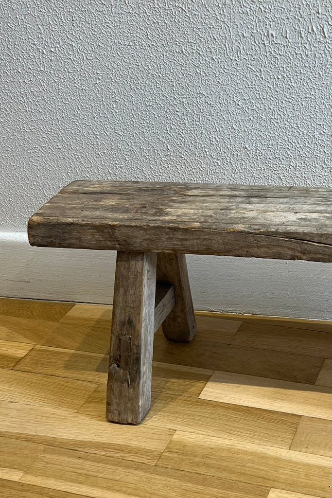 Mini tabouret ancien en orme massif, provenance des campagnes chinoises, 19ème. Pièce unique.