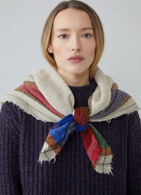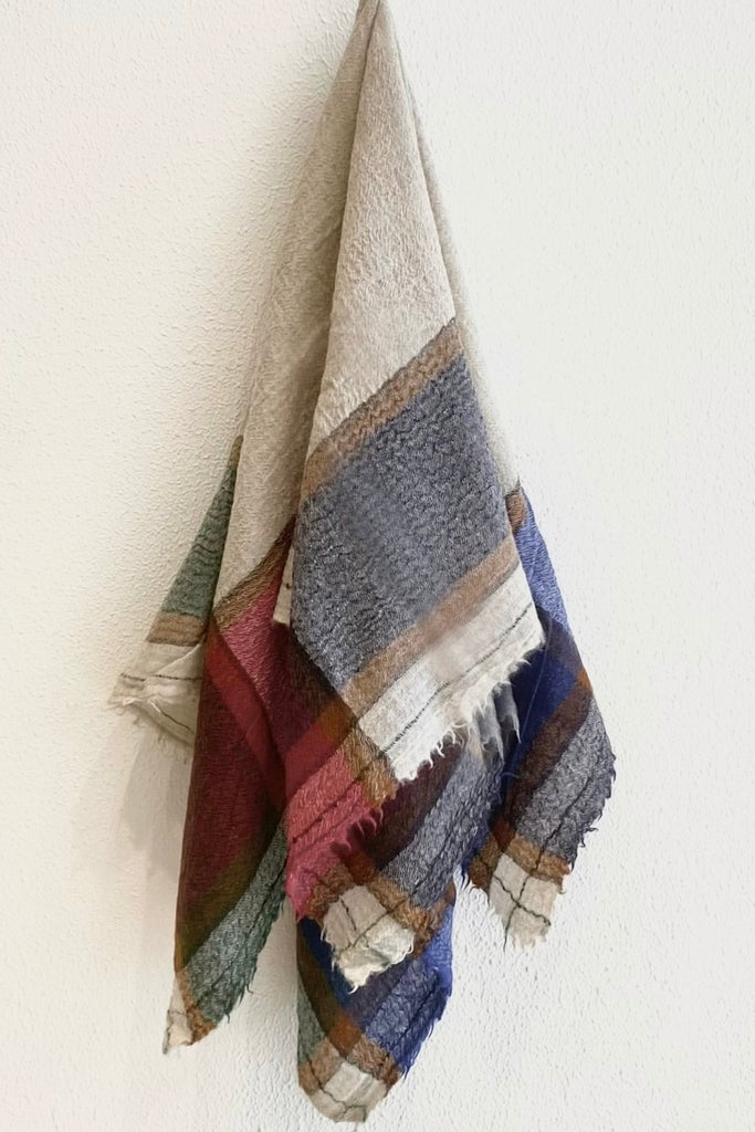 Écharpe tissée, finitions frangées et broderie "M" comme Moismont.