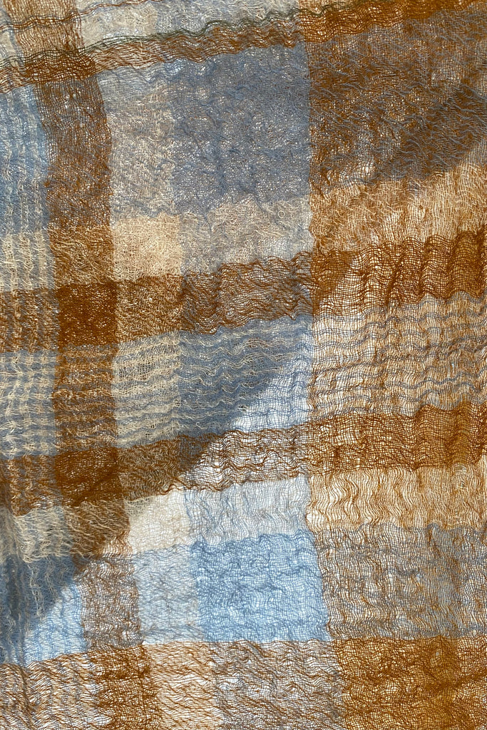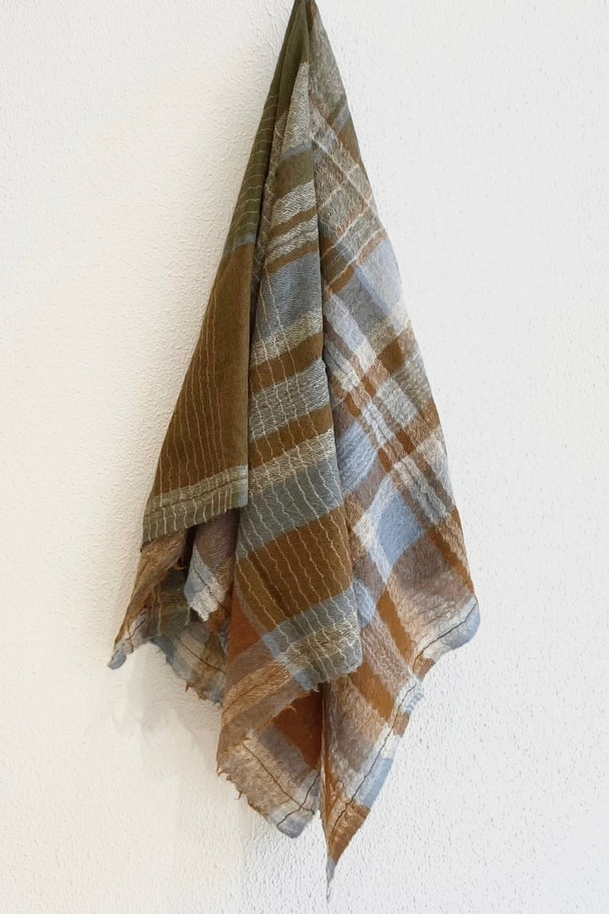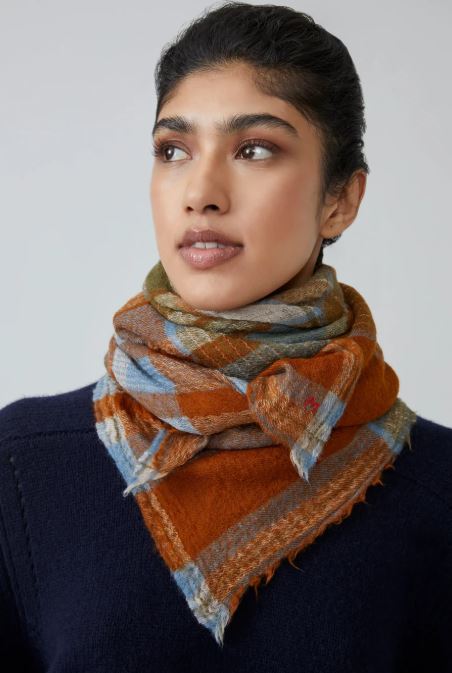 Écharpe tissée à carreaux, finitions frangées et broderie "M "comme Moismont.