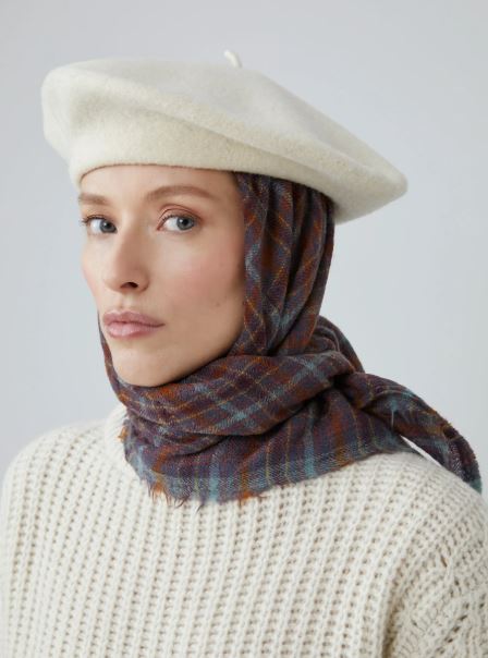 Écharpe tissée imprimé carreaux, finitions frangées et broderie "M" comme Moismont .