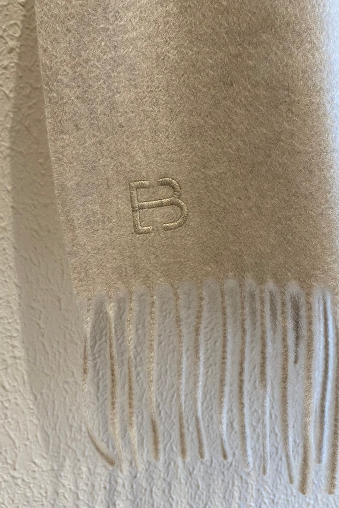 Écharpe en cachemire, monographe brodé au bas et finitions frangées.
