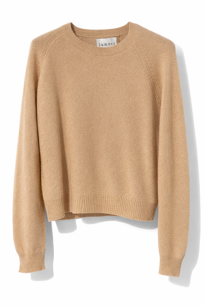 Pull fin et coupe droite, manches longues et encolure ronde. manches raglans diminuées.