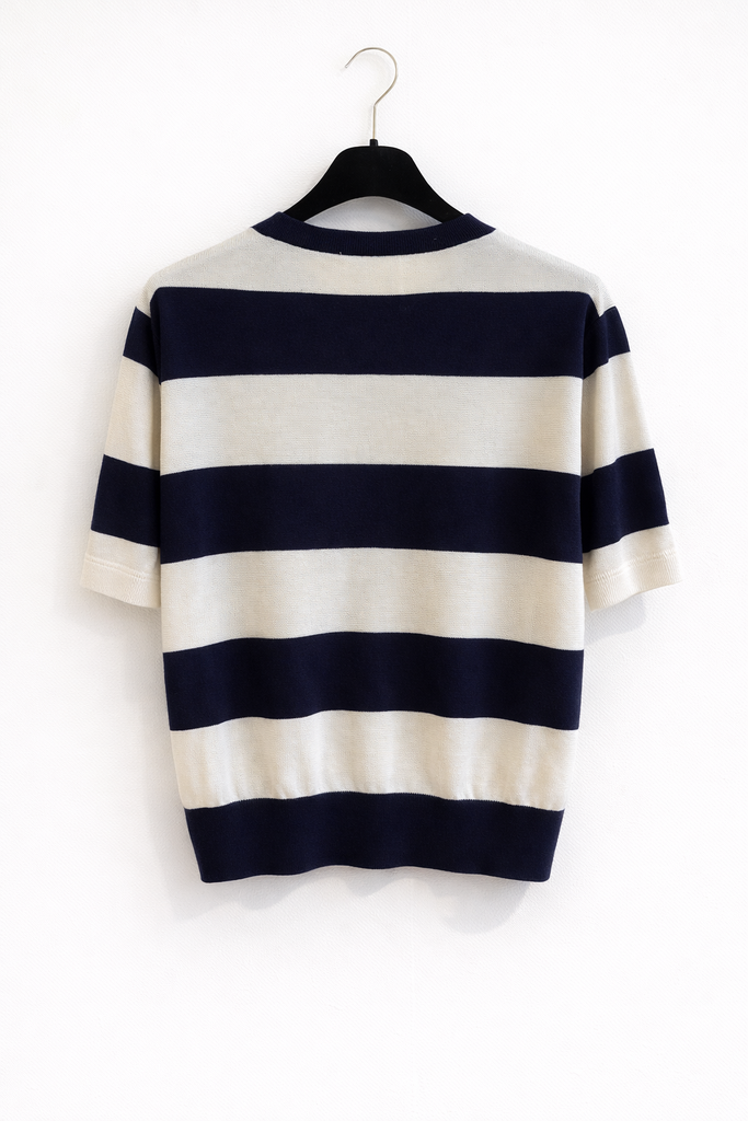 Pull souple en maille rayée.