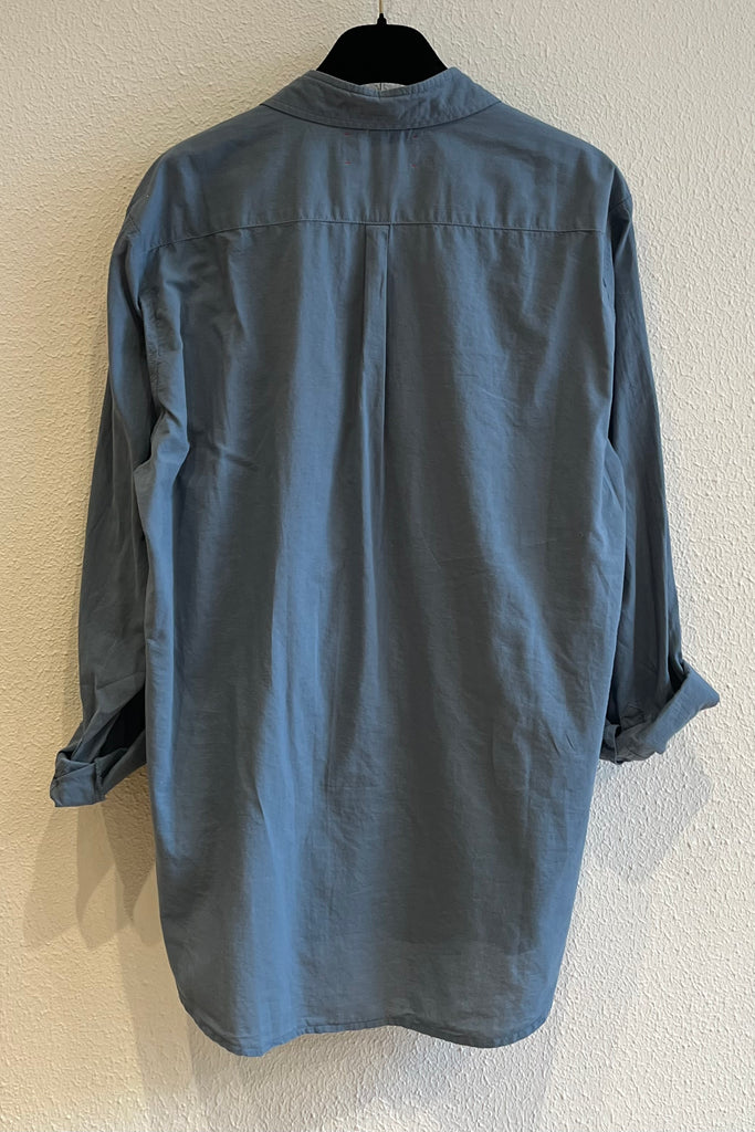 Chemise en voile de coton, boutonnée à l'avant, manches longues boutonnés, coupe droite, bas de chemise arrondie.