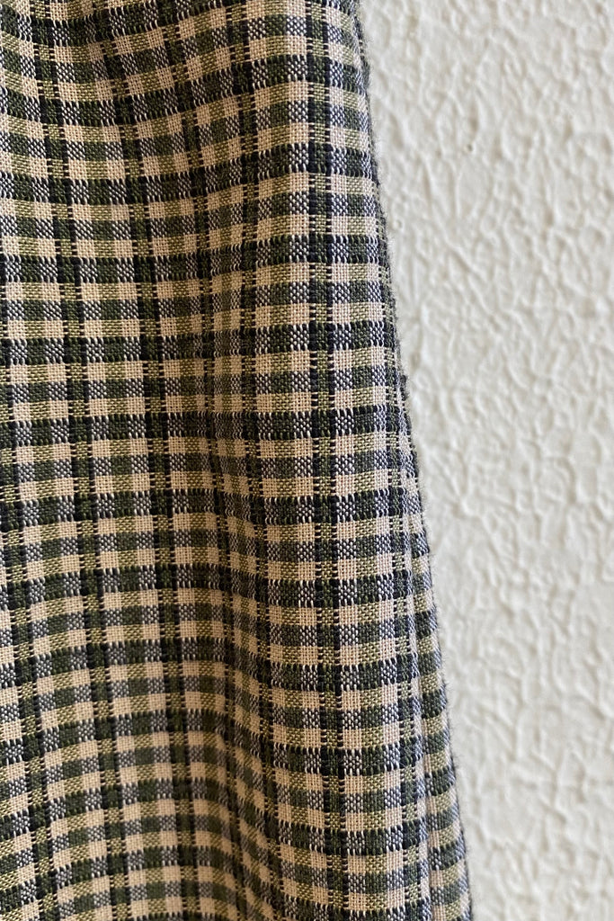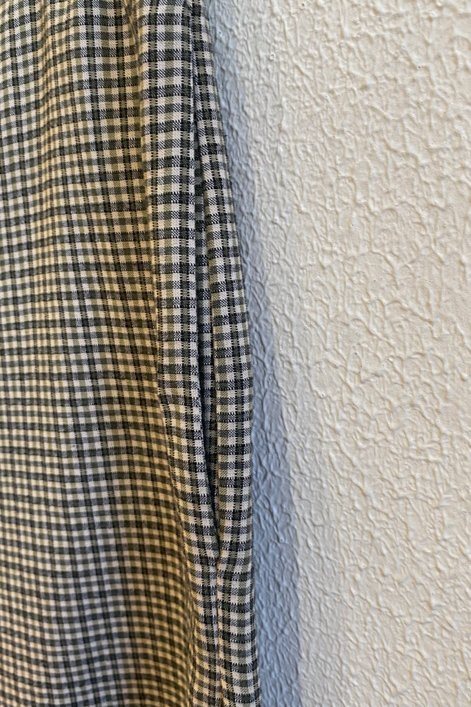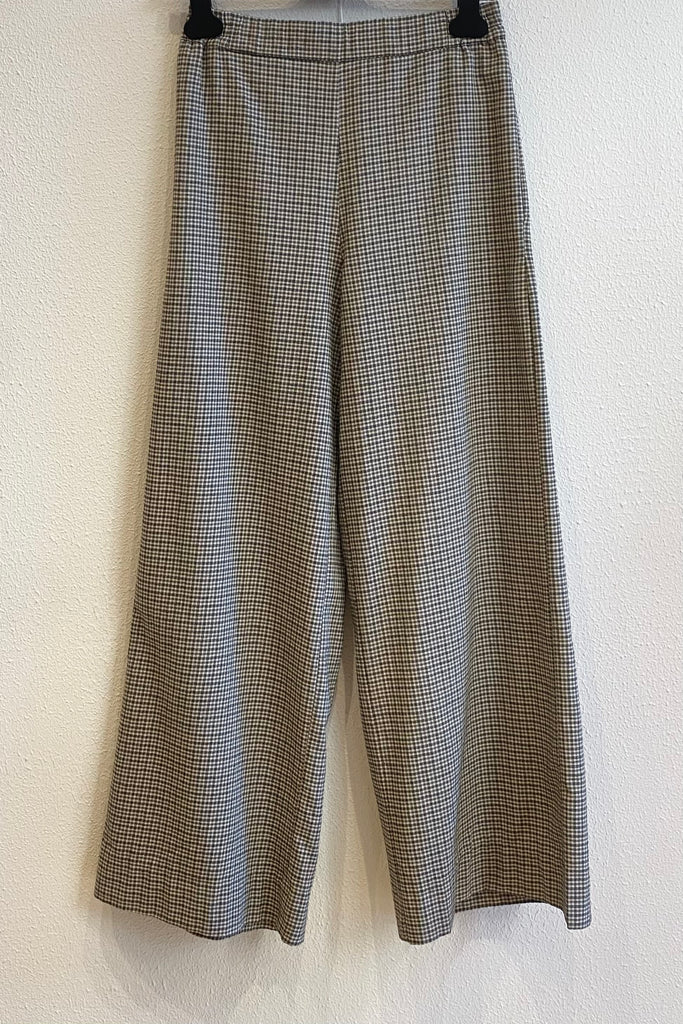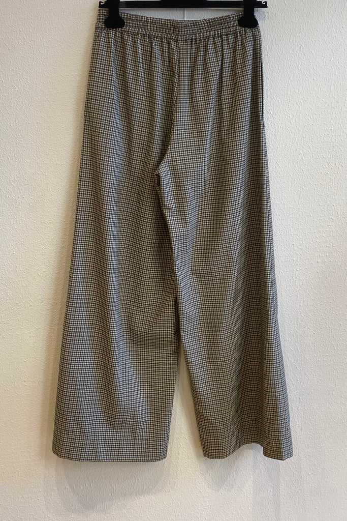 Pantalon en toile à carreaux, taille élastiquée, coupe droite et poches sur les côtés.