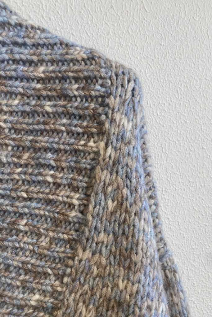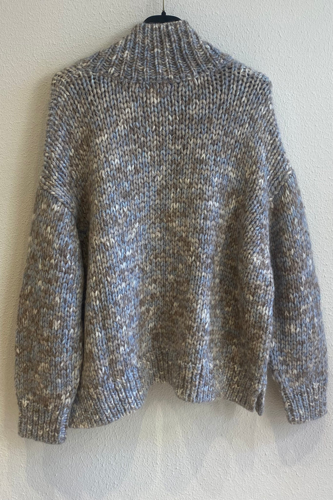 Pull chiné en grosse maille, col V, bordures côtelés.