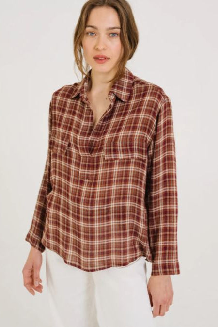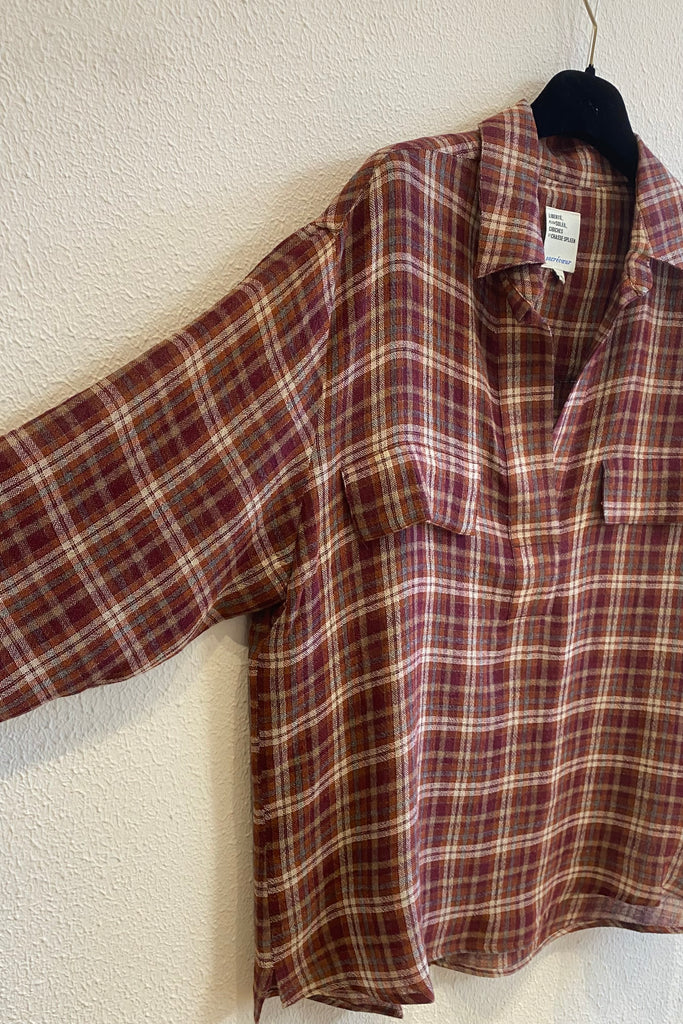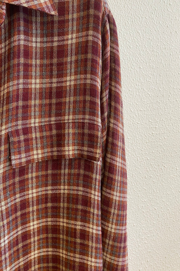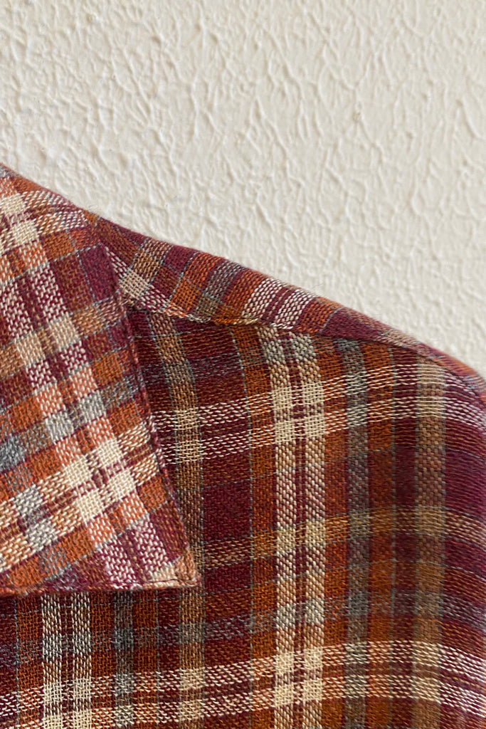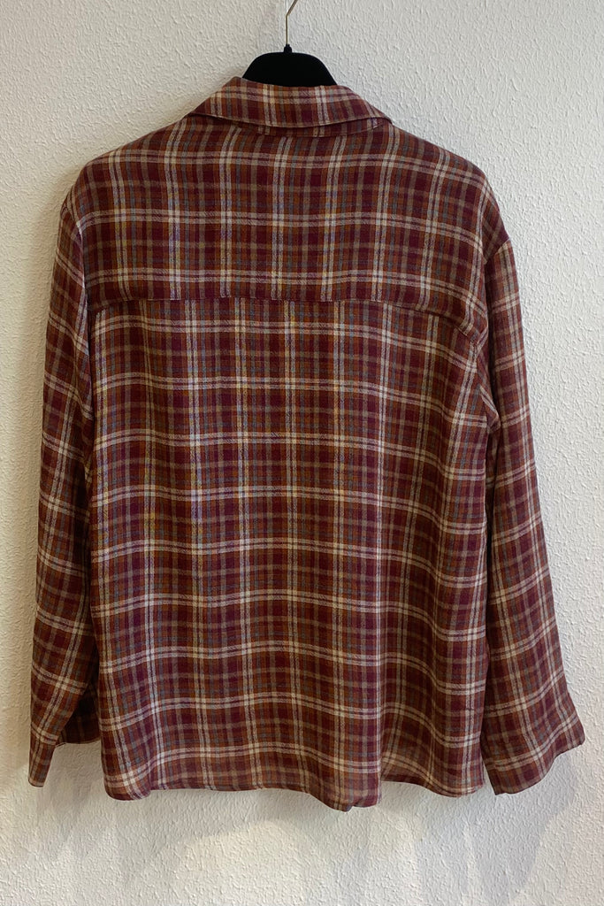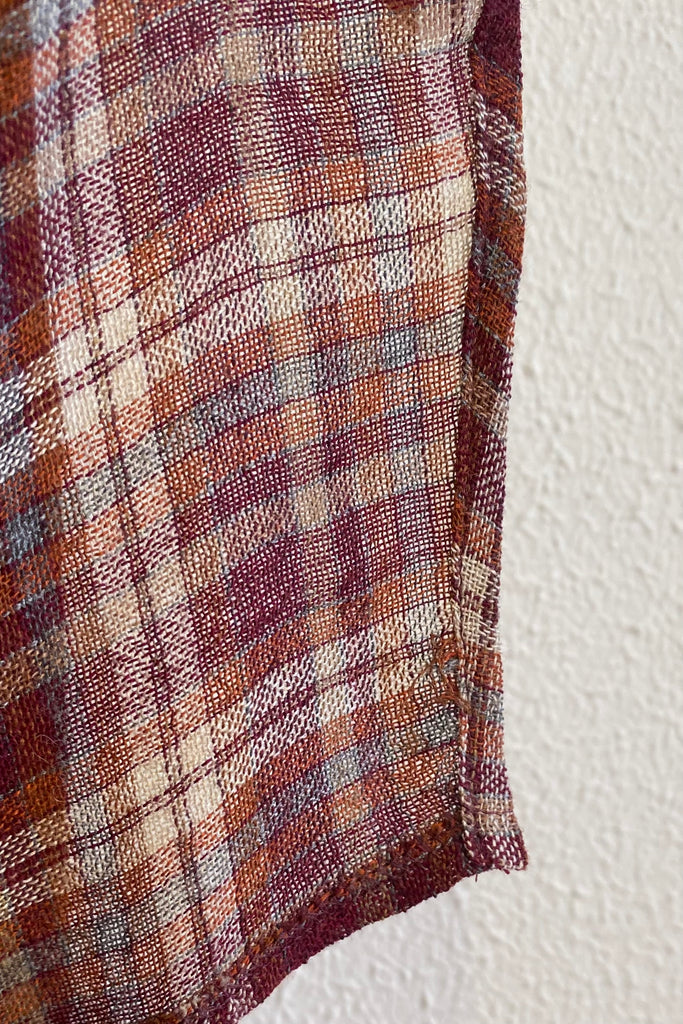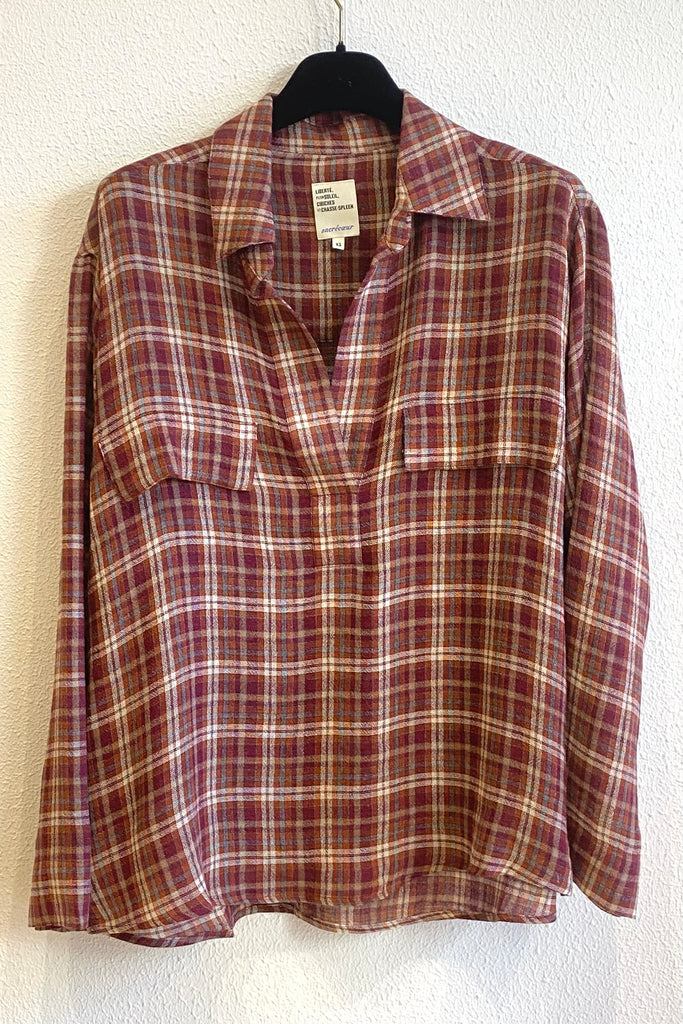 Vareuse en étamine à carreaux, emmanchures basses, fente sur les côtés et fausses poches sur la poitrine.