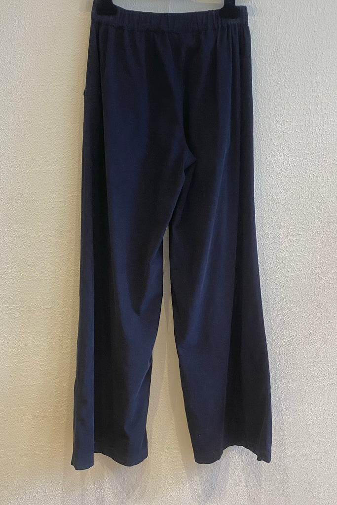 Pantalon en velours côtelé fin, taille élastiquée au dos et poches sur les côtés.