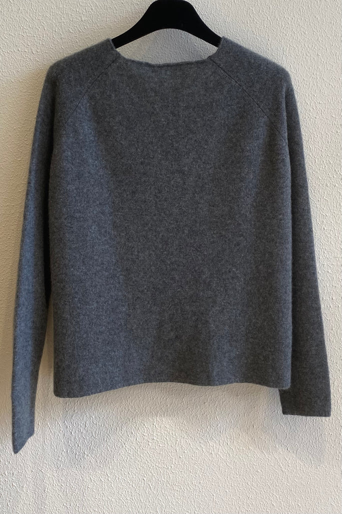 Pull en maille court et ample, manches longues étroites, col V et petites finitions côtelées.