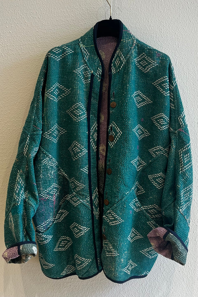 Veste réversible et différente des deux cotés, chaque pièce est unique.